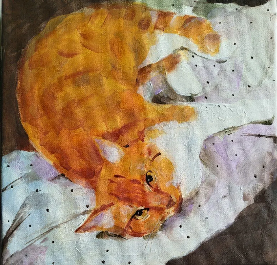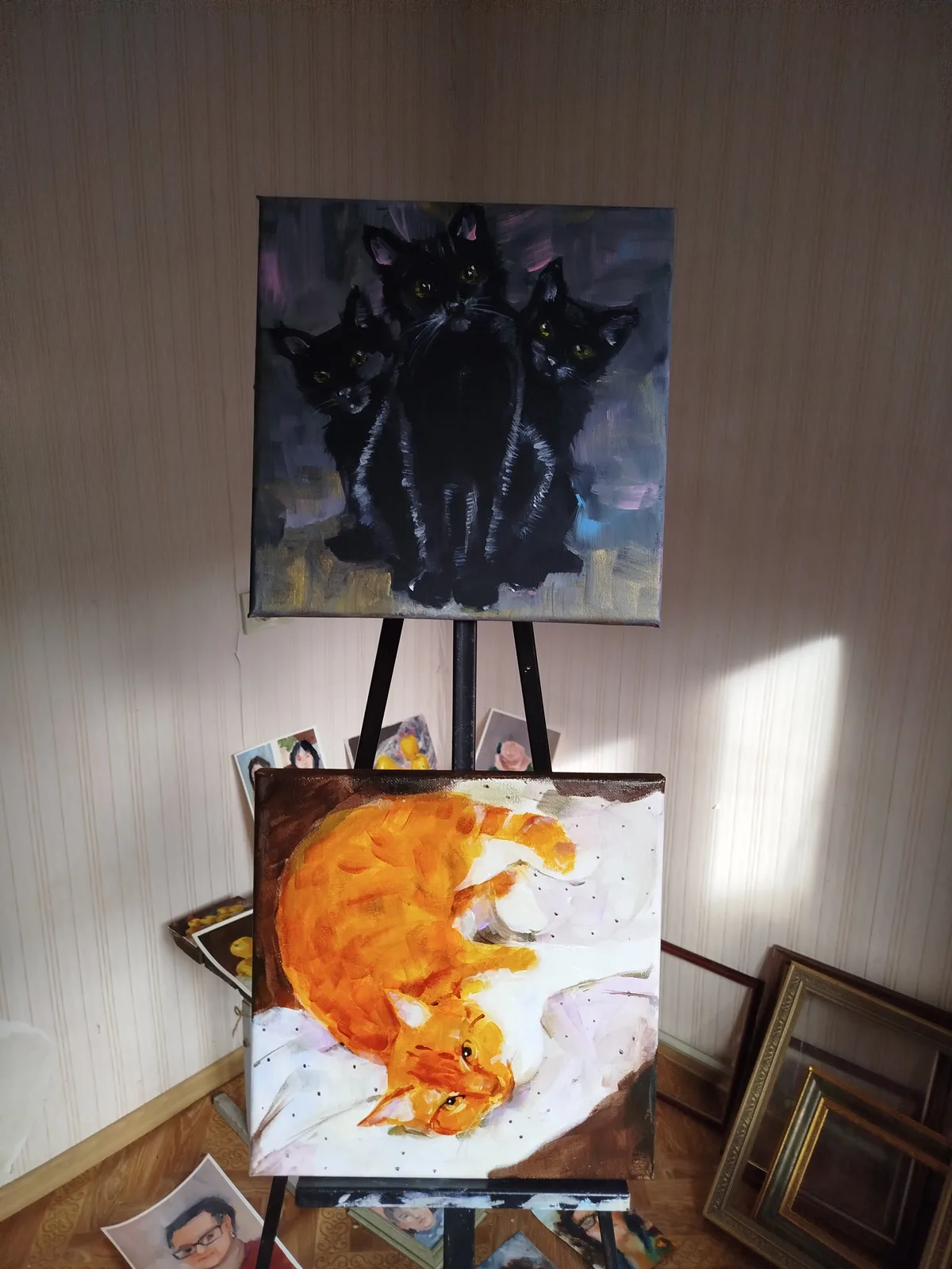 Когда чего-то не знаешь или боишься не справиться пробуй делать те что любишь и понимаешь,с такими мыслями я храбро взяла акрил после нескольких часов распаковки красок,выставления возможных постановок ,вдруг решила написать свою кошку ,многие ее знают и узнают на моих картинах)) и да это акрил ,холст на подрамнике,работа вскрыта лаком