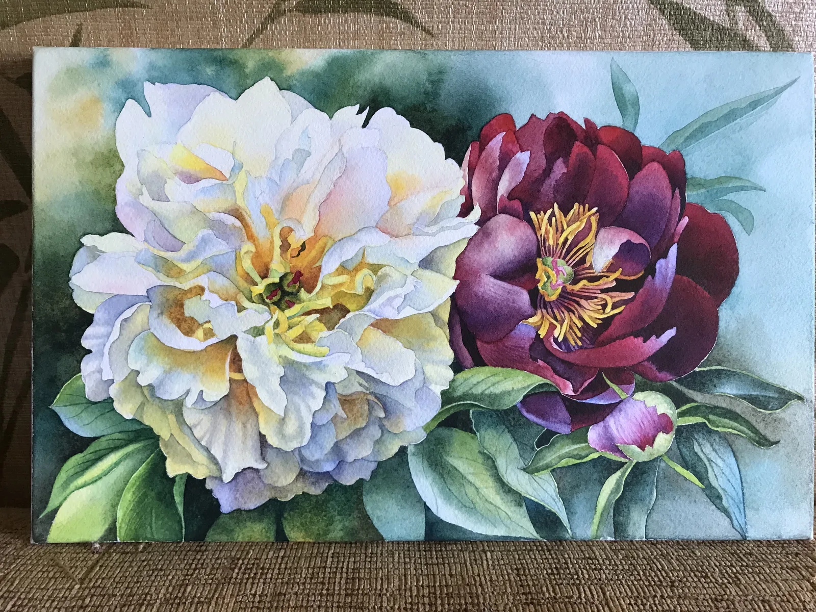 Я бы очень рекомендовал эту работу для твоей коллекции - эти пионы действительно привлекают внимание своей красотой и гармонией. В первую очередь, стоит обратить внимание на игру цвета: контраст между светлым и темным цветами, переходы от белого к красному и от желтого к зеленому создают глубину и объем. Композиция тоже очень удачная: цветы расположены так, что кажется, будто они только что сорваны и поставлены в вазу, а фон выполнен в мягких тонах и не перебивает внимание от главных героев. Эта работа прекрасно впишется в любой интерьер и станет его украшением.