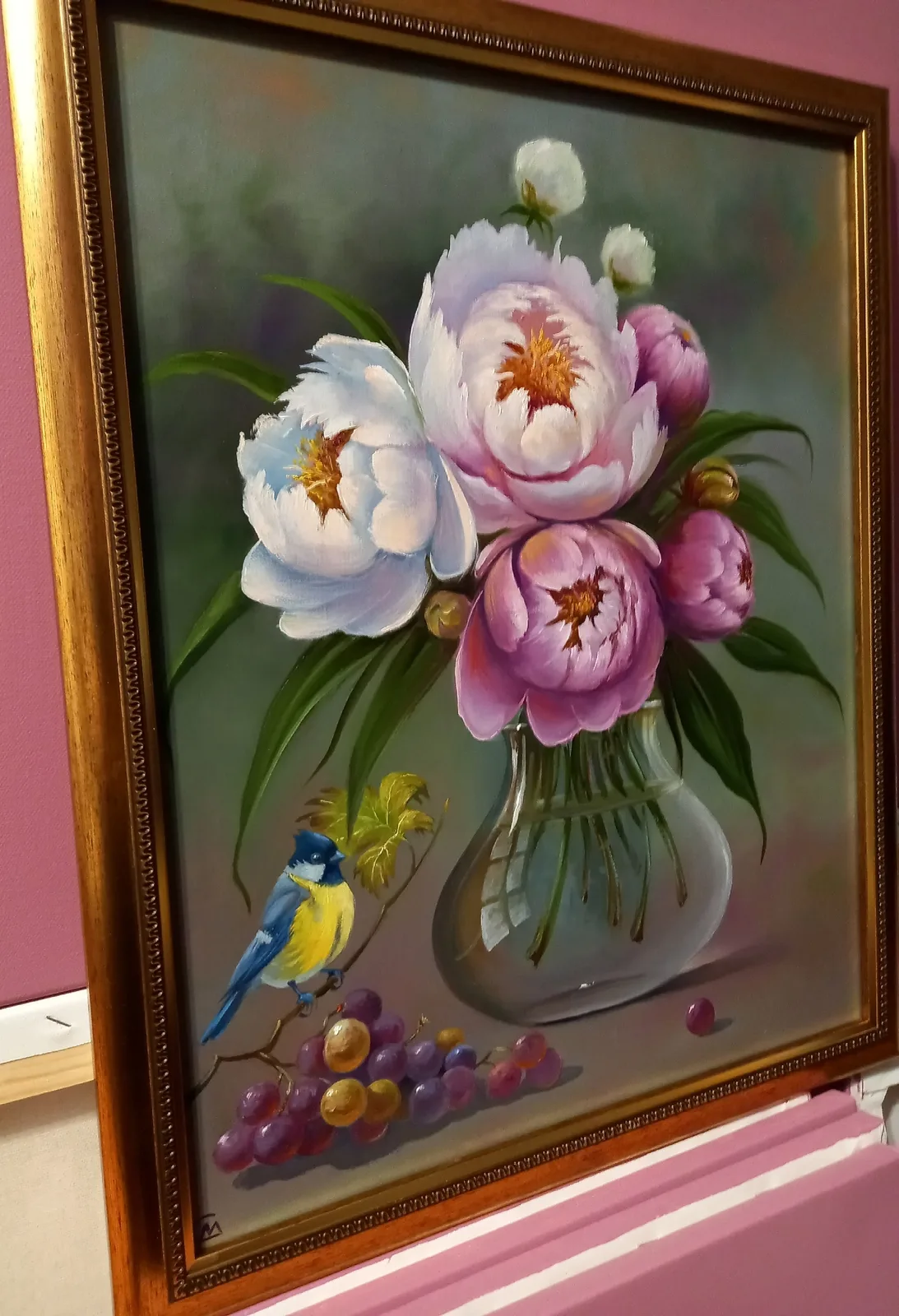Пионы — эта картина греет душу каждый раз, когда смотрю на неё. Написал её в 2025 году, работа кипела несколько дней, пока на холсте не ожила прекрасная ваза с цветами. Вдохновил на создание этого натюрморта обычный букет в стеклянной вазе, который стоял у меня на столе. На картине размер цветов получился довольно крупным, и они заняли всё пространство, создавая ощущение свежести и яркости.