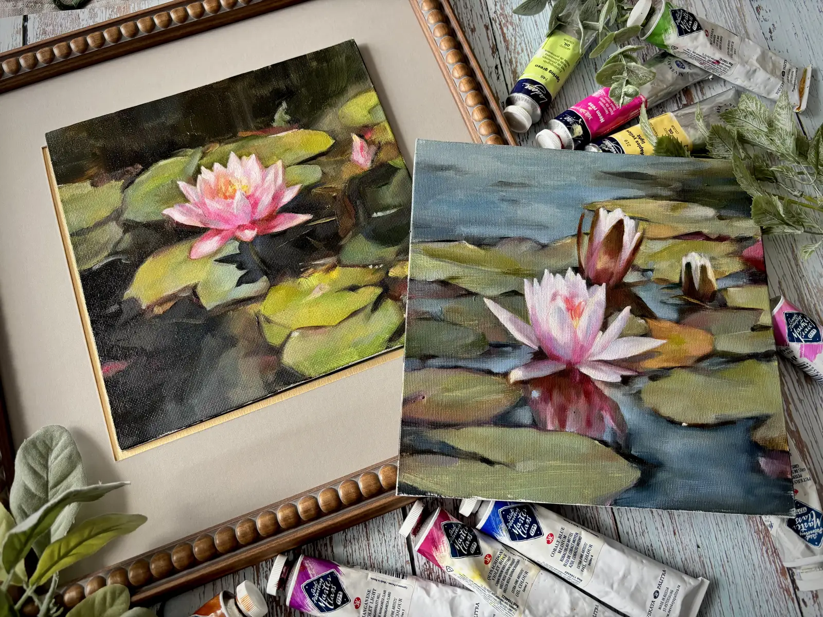 Работала над «Нимфеей. Темная вода» с удовольствием, масляные краски на холсте словно оживили нежный цветок на темной воде.